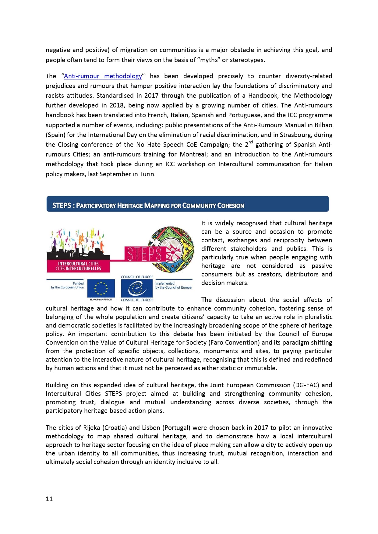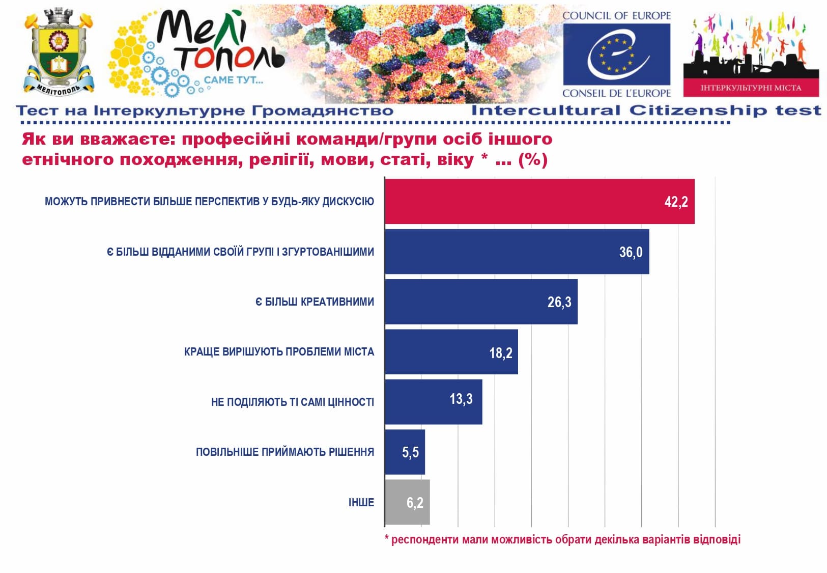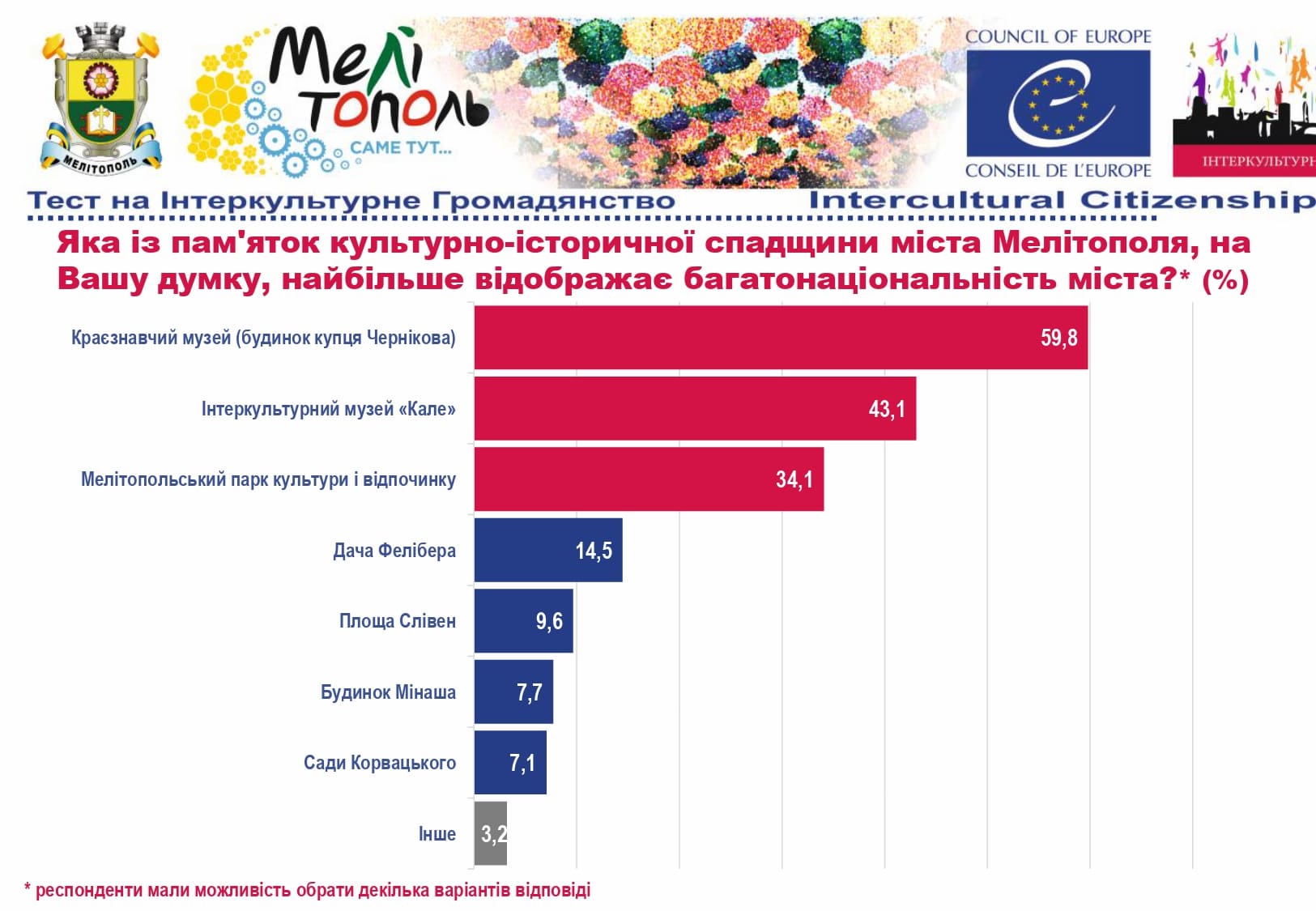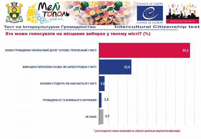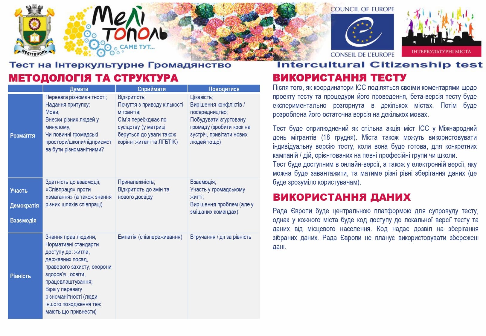 У рамках реалізації проєкту «Боротьба з чутками» за підтримки Програми «Інтеркультурні Міста» (ІСС) Ради Європи (РЄ), за методикою експерта з ІСС політики РЄ Др. Ксенії Рубікондо й у співпраці з Центром соціологічних досліджень Мелітопольського державного педагогічного університету, з 11 червня по 2 липня 2021 року, проводилося опитування жителів учасників Української Мережі Інтеркультурних Міст (ІСС-Україна) – Вінниця, Луцьк, Мелітополь, Павлоград, Одеса, Суми – з ціллю класифікації існуючих чуток та упереджень, що стосуються культурного різноманіття.