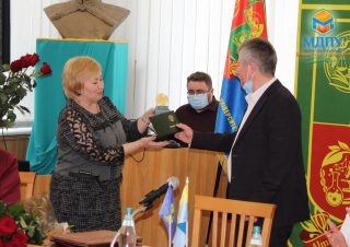 Голова Первинної профспілкової організації Тетяна Дюжикова вручила ректору Почесний знак «За розвиток соціального партнерства» за сприяння розвитку соціального партнерства та за сприяння розвитку профспілкового руху, соціального діалогу, партнерства.
