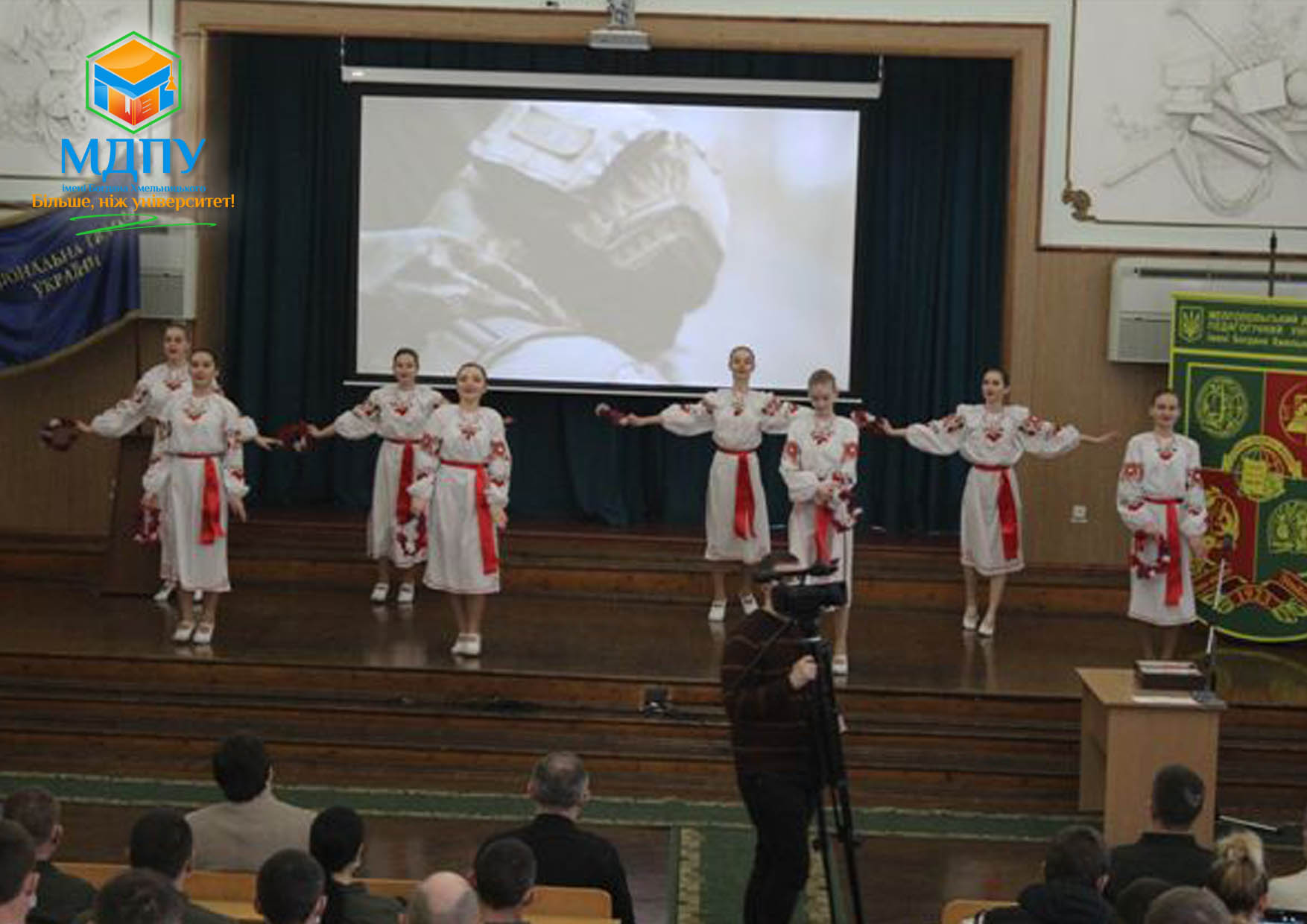Зал із вдячністю та щирими оплесками вітав артистів сцени – студентів університету: ансамбль «Елегія Дєнц», Євгена Білоуса, Дениса Булаху, Вікторію Множинську, Ніколь Грицаєнко.