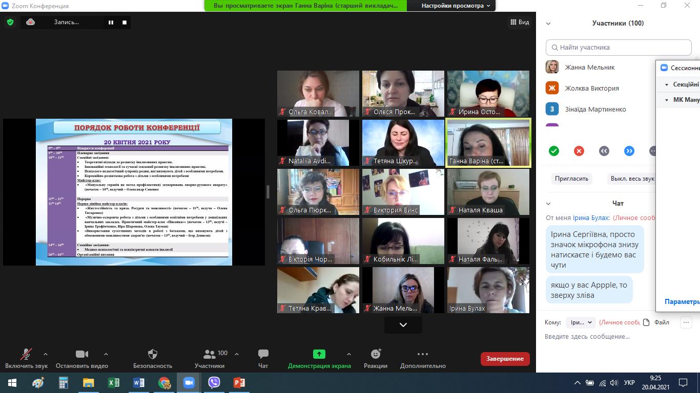 – МК «Писанка» – практичний показ-тренінг музично-оздоровчого заняття з дітьми з ООП, проведеного у ІРЦ «Школа життя» (тренерки: Трофімченко Ірина, Шаронова Віра, Таушан Олена, м. Хмельницький) учасники дізналися про особливості музично-терапевтичного процесу завдяки різним видам діяльності (тілесно-орієнтована практика, спонтанний танцювальний етюд та ін.), навчилися вивільняти власні емоції за допомогою музичних інструментів, рефлексувати за допомогою художньої діяльності та музикомалювання.
