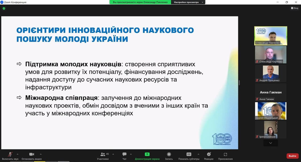 Кандидат технічних наук, доцент, перший проректор Мелітопольського державного педагогічного університету імені Богдана Хмельницького Павленко О.М. розкрив питання Євроінтеграційних орієнтирів інноваційної діяльності молоді України.