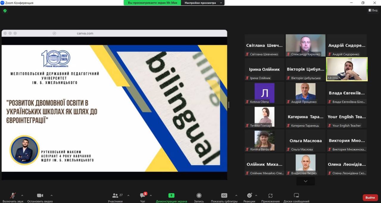Майстер-клас «Розвиток двомовної освіти в українських школах як шлях до євроінтеграції»- аспірант 4 курсу навчання Рутковський М.