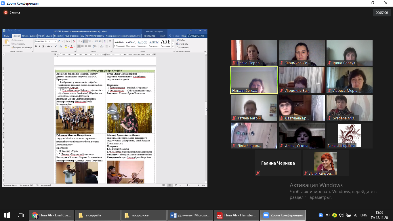 Із пленарними доповідями виступили Сегеда Н.А. – доктор педагогічних наук, професор, завідувач кафедри теорії і методики музичної освіти та хореографії Навчально-наукового інституту соціально-педагогічної та мистецької освіти Мелітопольського державного педагогічного університету імені Богдана Хмельницького і Василенко Л.М. – доктор педагогічних наук, доцент, кафедри теорії і методики музичної освіти та хореографії Мелітопольського державного педагогічного університету імені Богдана Хмельницького.