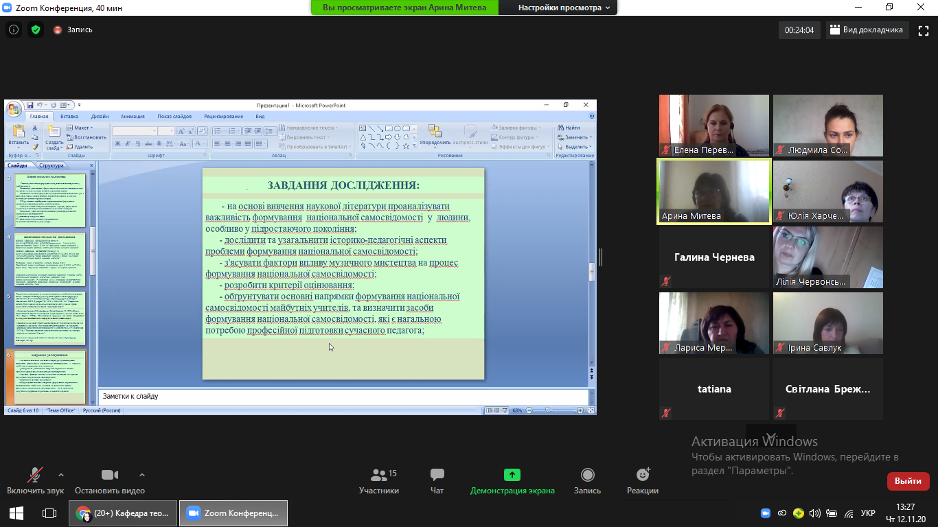 Підсумками своєї трирічної наукової роботи в межах наукової теми кафедри поділились її науково-педагогічні працівники Багрій Т.Є., Брежнєва С.Б, доц. Василенко Л.М., Сопіна Л.Г., доц. Панченко Г.П., проф. Сегеда Н.А., Переверзєва О.В., Ускова А.Л., доц. Федоров М.П., доц. Червонська Л.М., Мержева Л. Ф., Врубель Г. Ф., Мітєва А. М., Міщенко С. П., Савлук І. В., Харченко Ю. А.