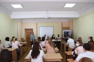 Розпочалась конференція зі слів привітання куратора з організаційно-виховної роботи зі студентською молоддю Ернеста Муртазієва, який заохотив всіх здобувачів до плідної роботи.