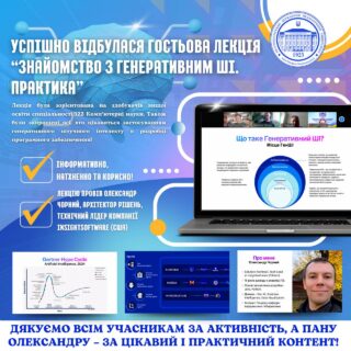 🏛️📌 Лекція була зорієнтована на здобувачів вищої освіти спеціальності 122 Комп’ютерні науки. Також були запрошені всі, хто цікавиться застосуванням генеративного штучного інтелекту в розробці програмного забезпечення.