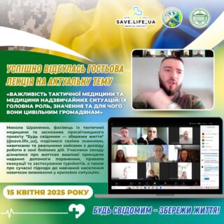 ✅✊🏻Основною метою лекції було ознайомлення студентів із практичним досвідом із практичним досвідом застосування тактичної медицини в умовах бойових дій та надзвичайних ситуацій, а також підвищення рівня обізнаності цивільного населення щодо алгоритмів першої домедичної допомоги.