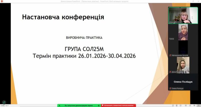 🌱 Проведення настановчої конференції сприяло чіткому усвідомленню здобувачами змісту та відповідальності виробничої практики, а також створило підґрунтя для ефективної реалізації набутих теоретичних знань у практичній діяльності.