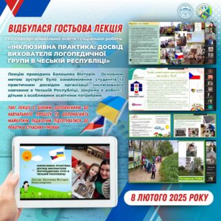 📝💫Гостьова відкрита лекція «Інклюзивна практика: досвід вихователя логопедичної групи в Чеській Республіці» була організована на високому рівні.