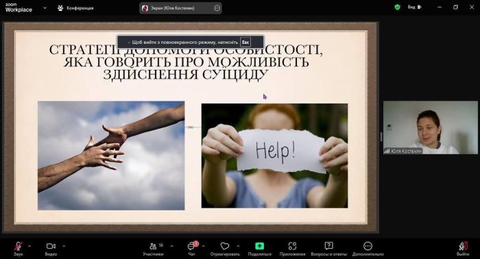 ✅✊🏻Завершилася конференція розглядом стратегій допомоги особам, які говорять про можливість самогубства. (Костенян Юля, МДПУ ім. Б. Хмельницького).