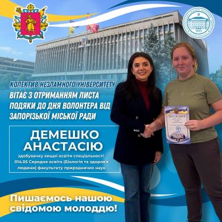 🏆🇺🇦За сумлінну працю, високий професіоналізм, активну волонтерську діяльність, і, найголовніше, за її непохитну активну соціальну позицію, Анастасія була нагороджена Листом подяки від Запорізької міської ради!
