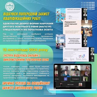 👩🏻💻💫Попередній захист, який проходив у дружній і професійній атмосфері з використанням платформи ZOOM, став важливим етапом підготовки майбутніх педагогів до підсумкового захисту.