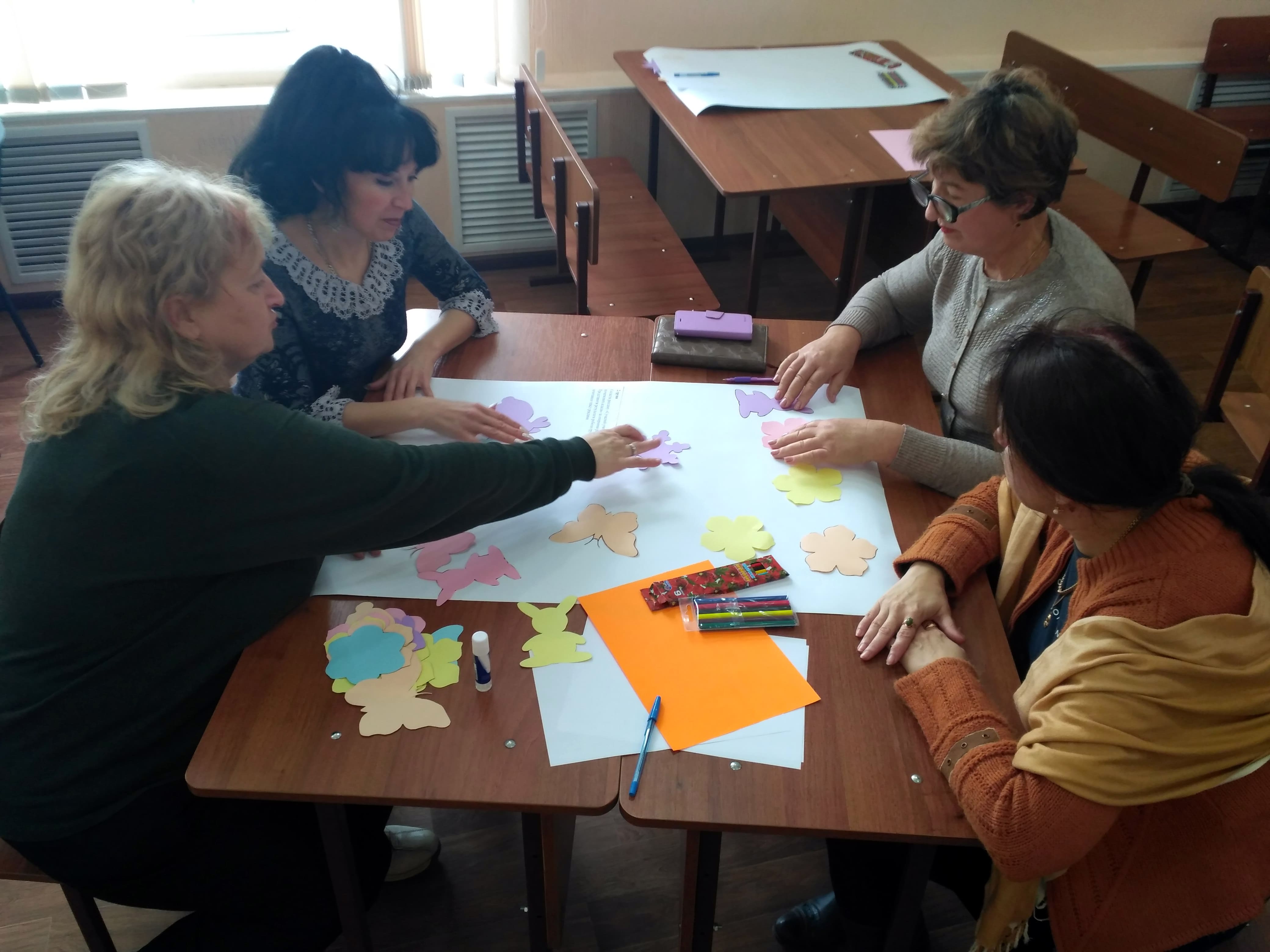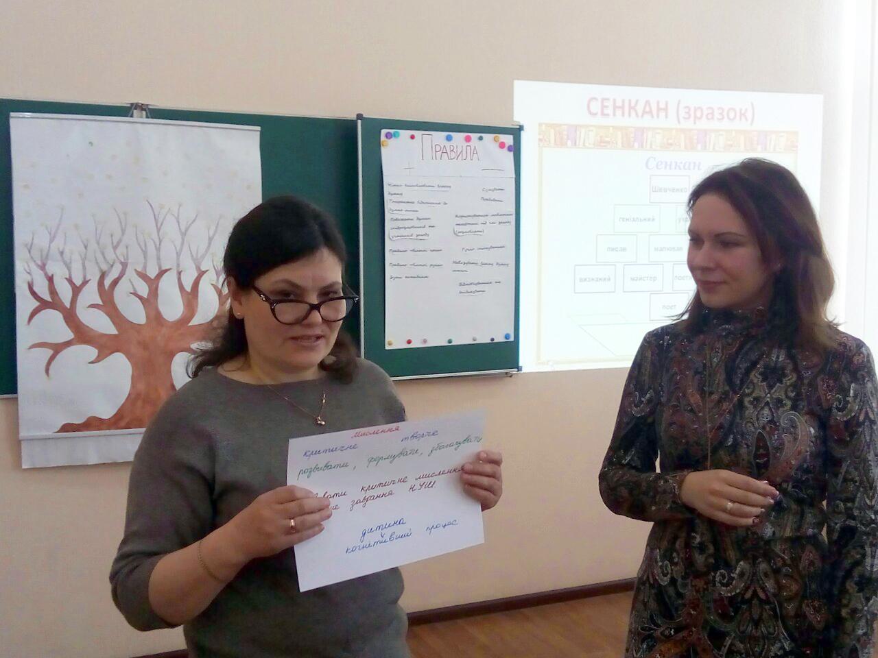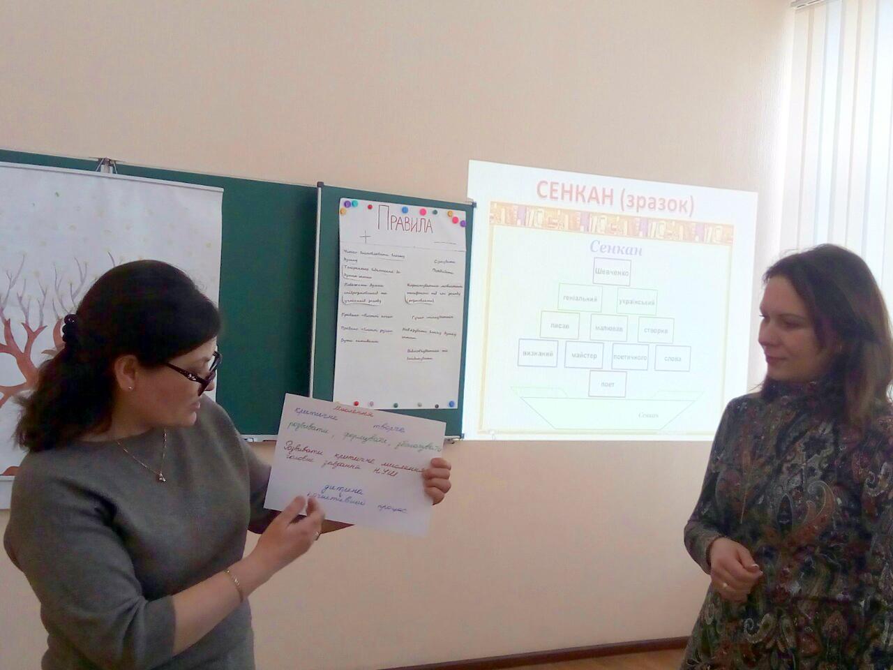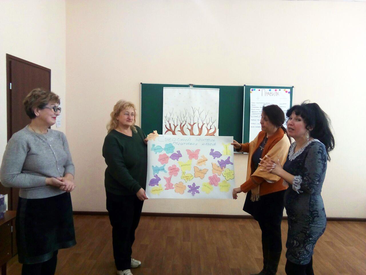 Всі учасники мали змогу ознайомитись з інтерактивними методами роботи в початковій та вищій школах, а саме: робота в групах «Педагогічне моделювання», портрет «Сучасний учень початкових класів», складання реклами «Сучасний учитель початкових класів», прийом Фішбоун «Сучасний освітній процес у початковій школі», вправа «Сенкан».