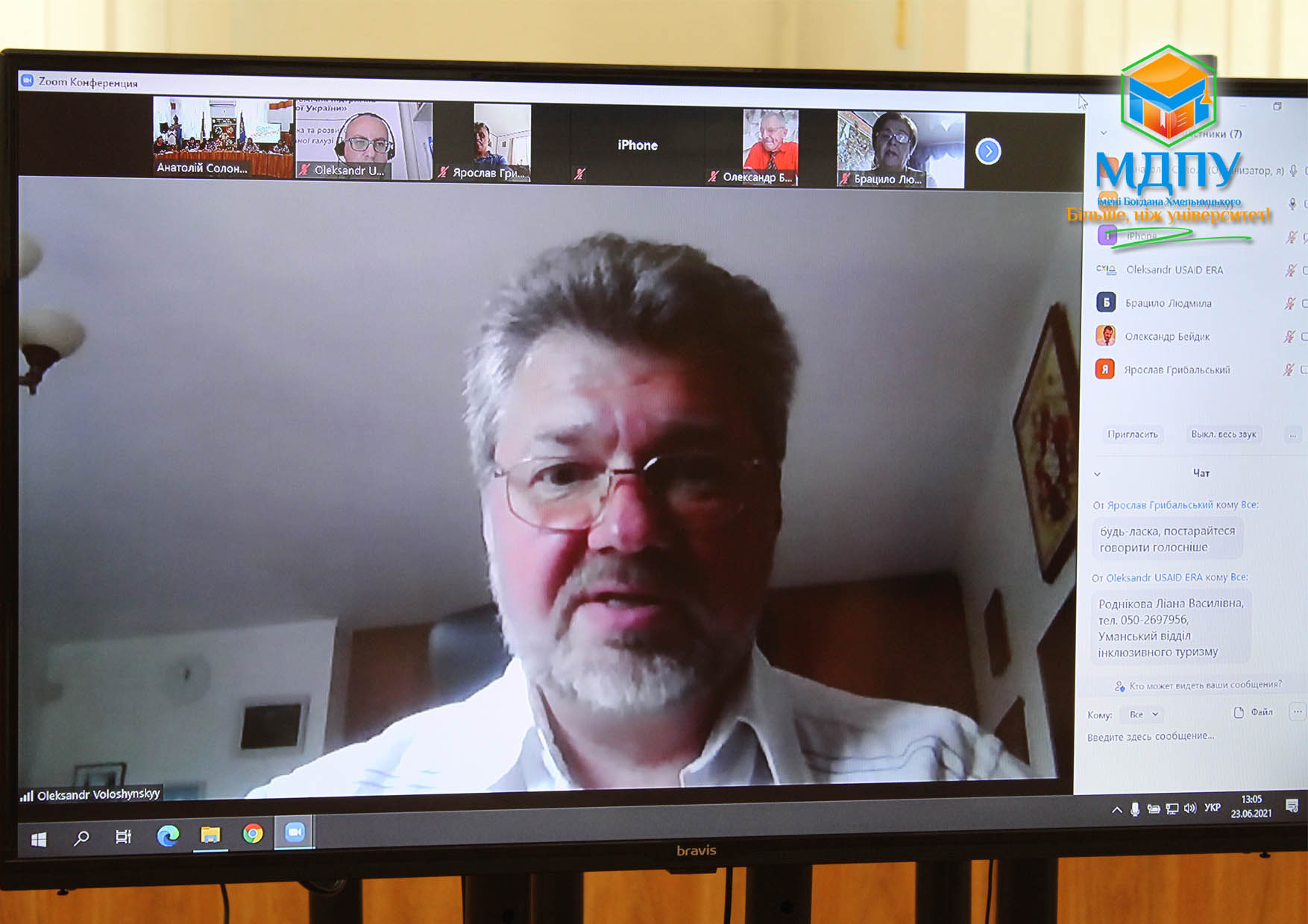 Ірина Арсененко зазначила, що реалізація проєкту за підтримкою ПРООН «Безбар’єрні туристичні маршрути Приазов’я» потребує відповідного кадрового потенціалу.  Акцентувала увагу на специфіці підготовки фахівців туристичної галузі за освітньою програмою Туризм  на кафедрі туризму, соціально-економічної географії та краєзнавства  та включенням до основних і вибіркових освітніх компонентів програми навчальних дисциплін які забезпечують набуття професійних знань, вмінь та навичок саме з організації та надання послуг адаптивного туризму.