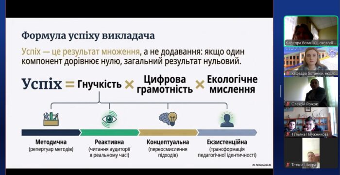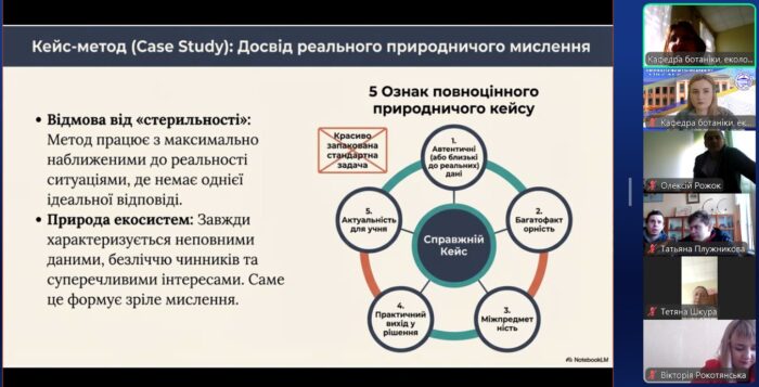 👩🏫📚 Лекторкою виступила доктор педагогічних наук, професор, завідувач кафедри ботаніки, екології та методики навчання біології ПНПУ імені В.Г. Короленка Марина Миколаївна Дяченко-Богун, яка представила концепцію «лабораторії мислення» як інтегративної моделі організації сучасного освітнього процесу.