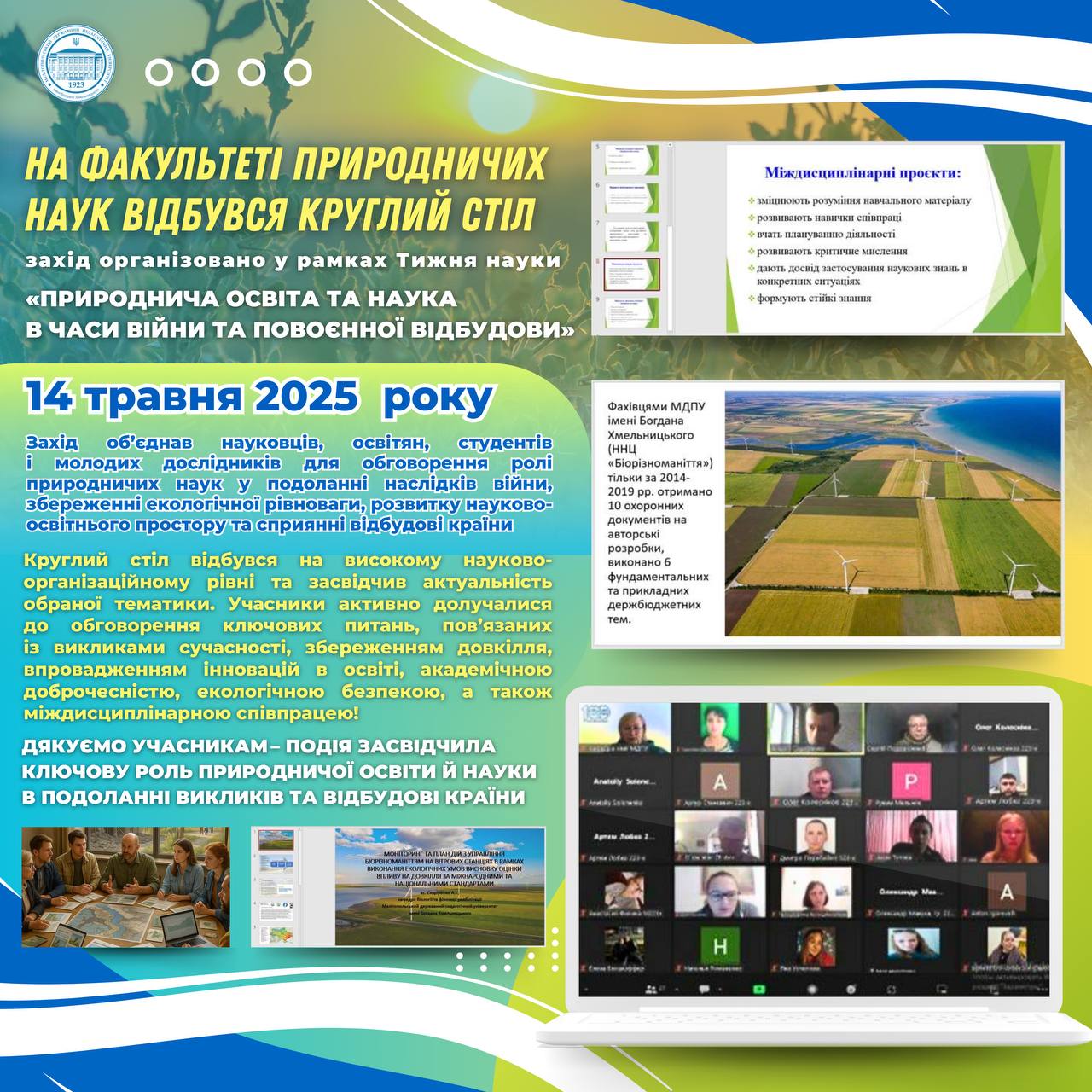🎓🧩Метою даного круглого столу було висвітлення сучасних викликів та можливостей для природничої освіти і науки в умовах війни та післявоєнного відновлення, сприяння науковому діалогу, пошуку рішень для сталого розвитку, збереженню довкілля та формуванню стійкої освітньої і наукової системи.