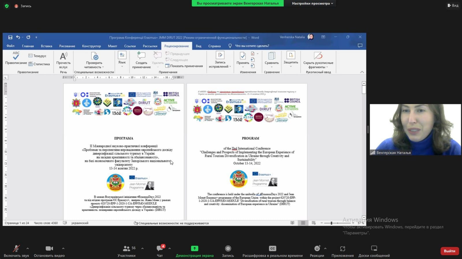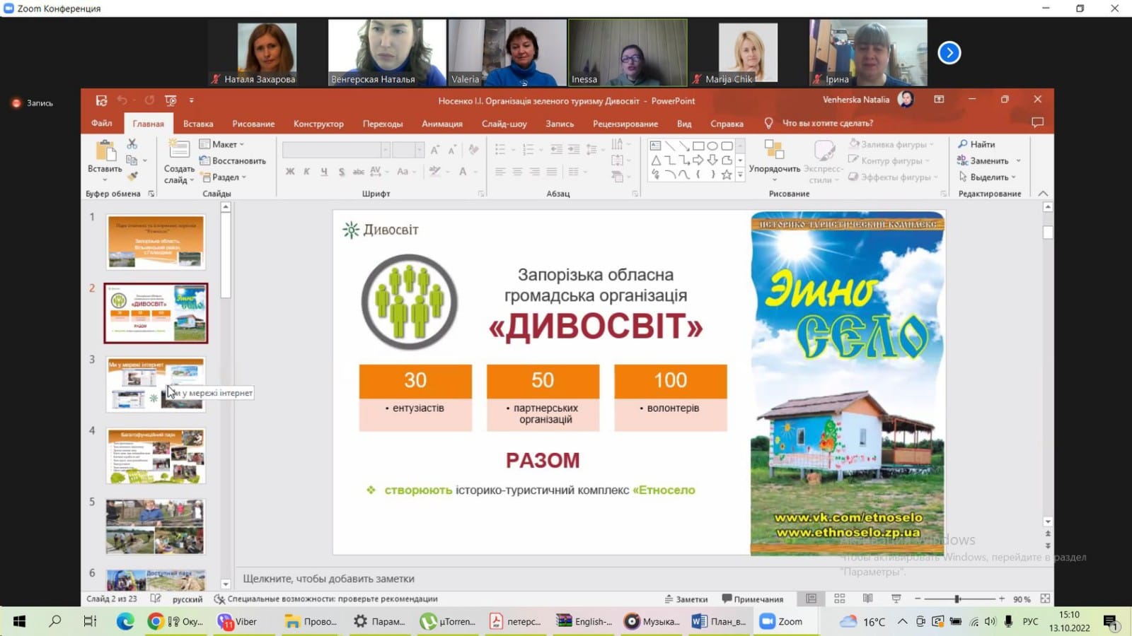 13-14 жовтня 2022 року викладачки кафедри управління та адміністрування Світлана Осипенко та Наталя Захарова взяли участь у ІІ Міжнародній науково-практичній конференції «Проблеми та перспективи впровадження європейського досвіду диверсифікації сільського туризму в Україні на засадах креативності та збалансованості», що проходила на базі економічного факультету Запорізького національного університету.