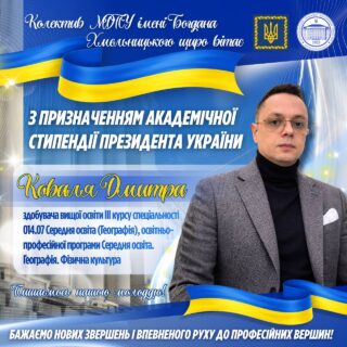 ‼️👏🏻 Відповідно до наказу МОН України №513 від 24 березня 2026 року Дмитру призначено Стипендію Президента України на ІІ семестр 2025–2026 навчального року