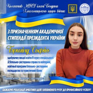 ‼️👏🏻 Відповідно до наказу МОН України №513 від 24 березня 2026 року Софії призначено Стипендію Президента України на ІІ семестр 2025–2026 навчального року.