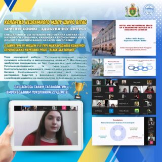 🍽️✅Тема наукової роботи: «Готельно-ресторанний простір сучасного мегаполісу в дискурсивному контексті». Дослідження проводилось на базі Науково-освітньої лабораторії Готельно-ресторанного та туристичного бізнесу МДПУ імені Богдана Хмельницького й присвячене вивченню впливу індустрії гостинності на формування міського простору з акцентом на соціокультурні та інноваційні аспекти.