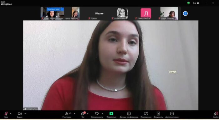 🌐📚 У другому етапі конкурсу, що відбувся 9 квітня 2025 року, Софія разом з іншими 17 фіналістами з-поміж 62 учасників гідно представила свою роботу англійською мовою, презентуючи результати дослідження перед міжнародним журі.