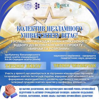 👩🏼🎓🌺 Окремі вітання висловлюємо науковому керівнику — кандидату педагогічних наук, доценту Четвертак Тетяні Юріївні — за фахове наставництво та підтримку студентської молоді.