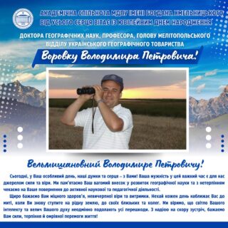 🏛️👏🏻 Академічна спільнота МДПУ імені Богдана Хмельницького від усього серця вітає із ювілейним Днем народження доктора географічних наук, професора, голову Мелітопольського відділу Українського географічного товариства Воровку Володимира Петровича!