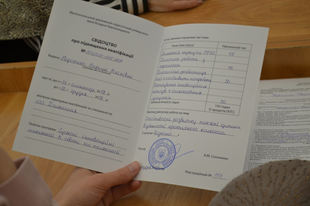 І вже на протязі останнього місяця університет зустрів у своїх аудиторіях перших слухачів курсів підвищення кваліфікації спеціальності 053 Психологія, що пройшли перепідготовку за освітньою програмою «Сучасні інноваційні технології в освіті та психології».