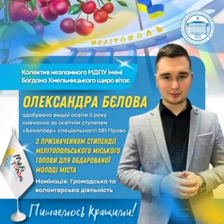 ⭐️🎓 Його активна громадянська позиція та невтомна робота у сфері молодіжної політики вражають! Олександр організовує волонтерські акції, ініціює освітні реформи, представляє студентську спільноту на зустрічах із державними діячами та є справжнім рушієм позитивних змін у суспільстві!
