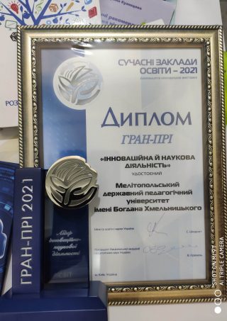 Ця почесна нагорода, отримана колективом університету, є значущою для кожного науково-педагогічного працівника, адже саме вони кожний день розширюють та змінюють можливості для творення нового знання. Оцінювання здобутків університету відбувалося і у тематичних конкурсах із різних номінацій. У цьому році комісія гідно оцінила роботу на тему: «Інноваційна практика в інтегруванні до європейського освітньо-наукового простору (досвід Центру болгаристики Мелітопольського державного педагогічного університету імені Богдана Хмельницького)» з номінації «Інновації в розвитку міжнародної співпраці в закладі освіти». Авторський колектив (кандидат історичних наук, доцент Пачев Сергій Іванович, кандидат філологічних наук, доцент Пачева Валентина Миколаївна, доктор Колева Красимира Дочева) отримав золоту медаль в номінації «Інновації в розвитку міжнародної співпраці в закладі освіти».
