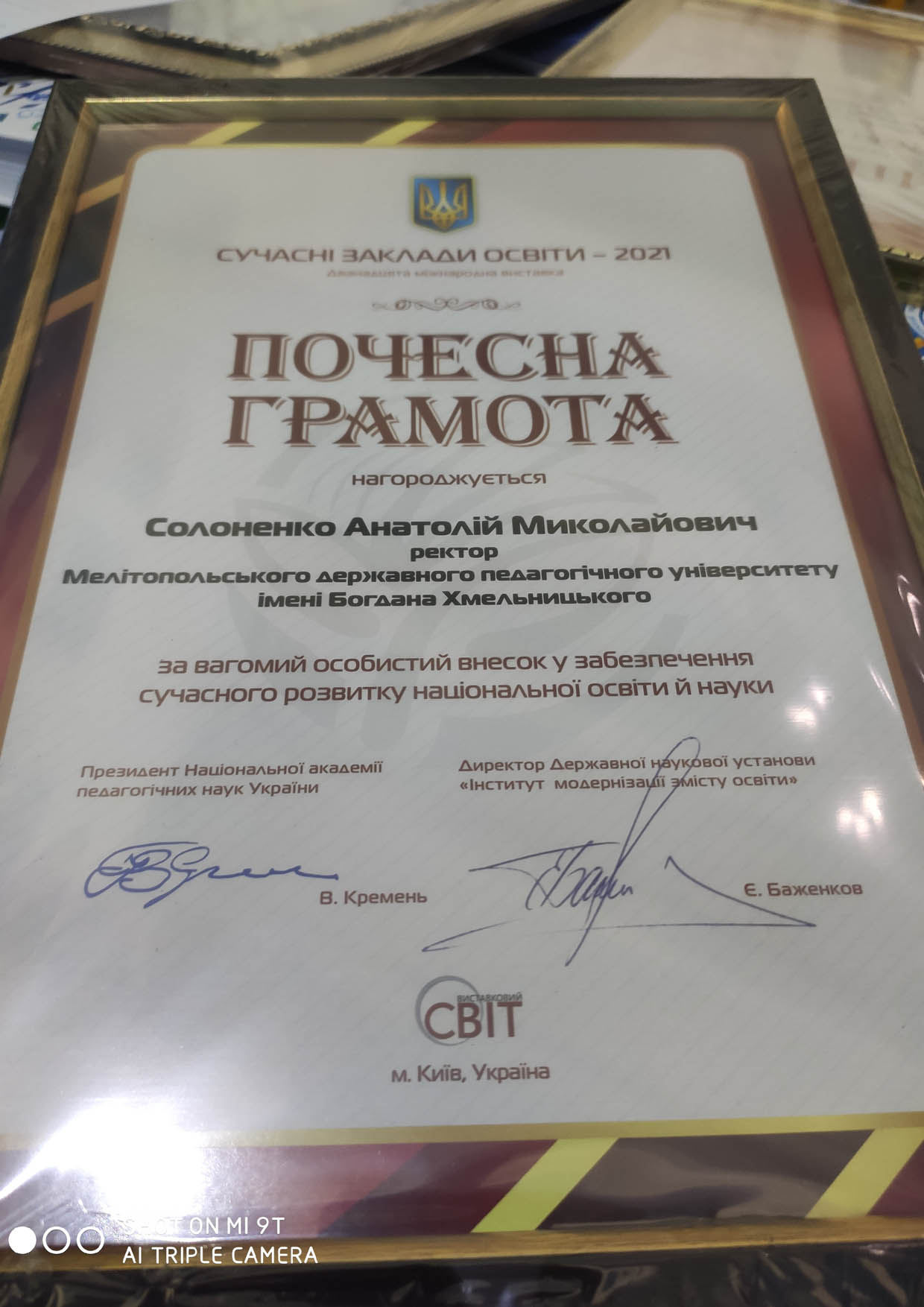 Нагороди проректору з наукової роботи Людмилі Москальовій було вручено заступником директора «Інститут модернізації змісту освіти», Юрієм Завалевським.