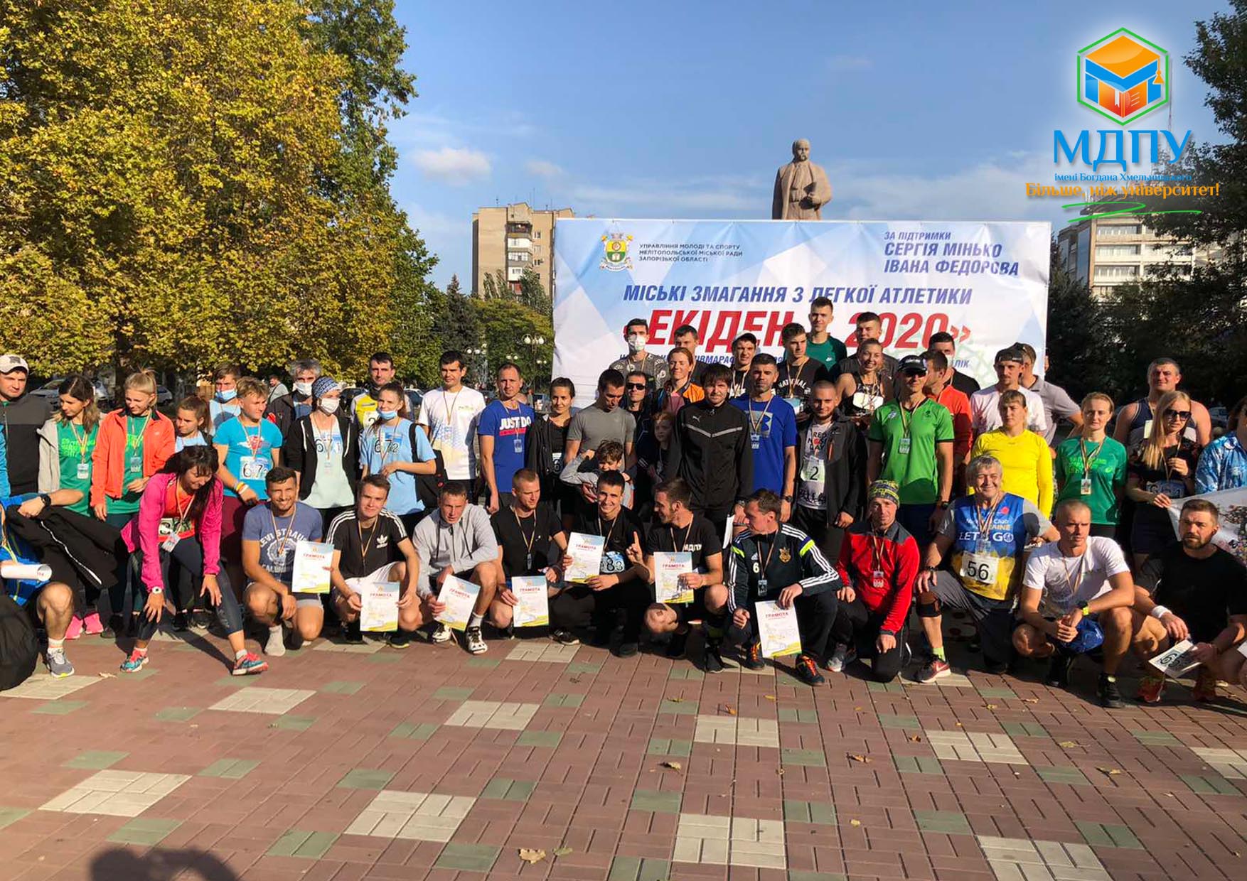 17 жовтня в Мелітополі пройшли треті відкриті міські змагання з легкої атлетики «Екіден-2020» на дистанції полумарафон – 21 0975 км в рамках проекту «Турнір поколінь».