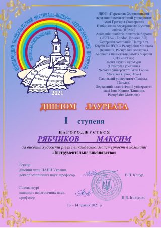 Диплом лауреата І ступеня – студент Навчально-наукового інституту соціально-педагогічної та мистецької освіти Рябчиков Максим, керівник – завідувач кафедри інструментального виконавства та музичного мистецтва естради Марина Білецька.