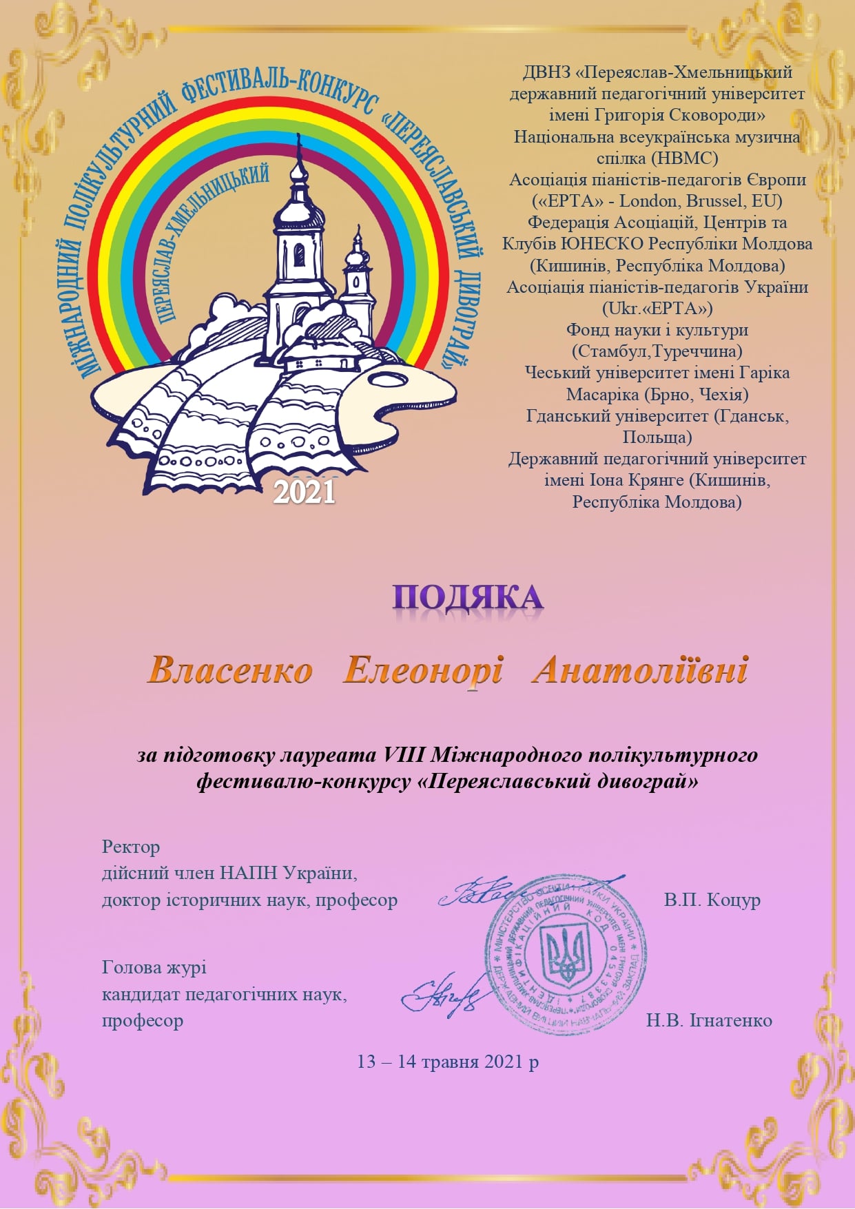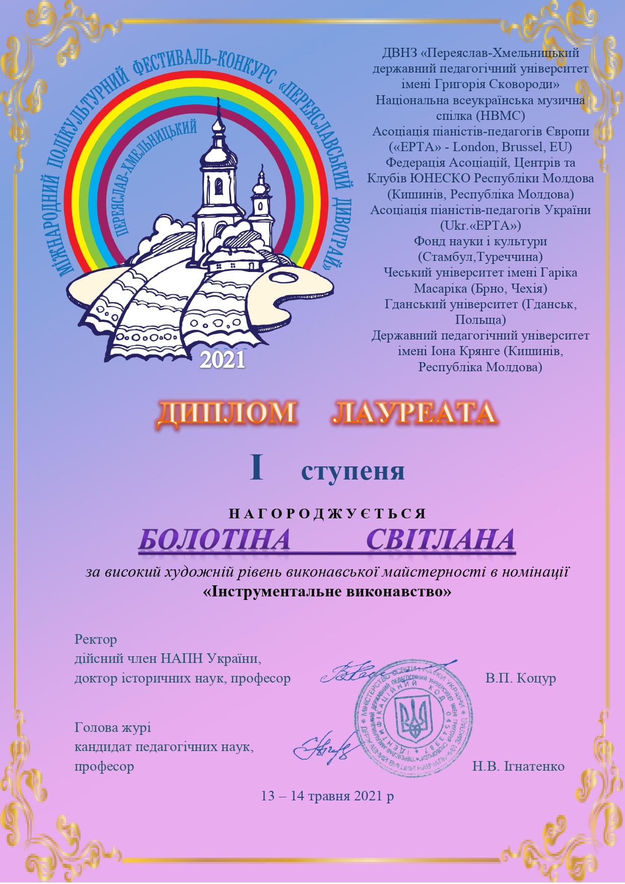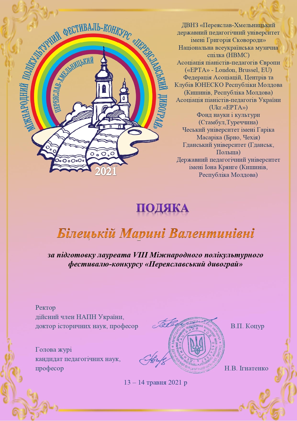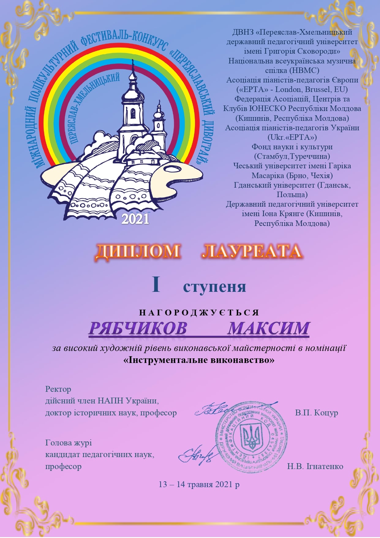 13-14 травня у місті Переяслав-Хмельницький відбувся VIII Міжнародний полікультурний фестиваль-конкурс «Переяславський дивограй”.