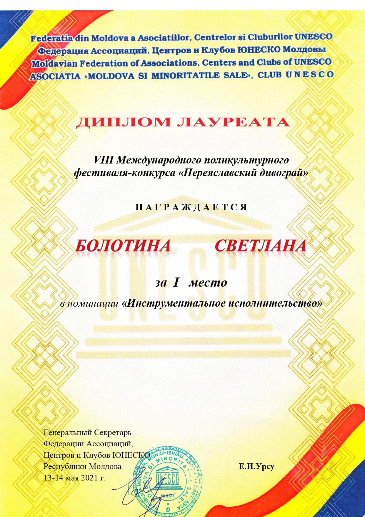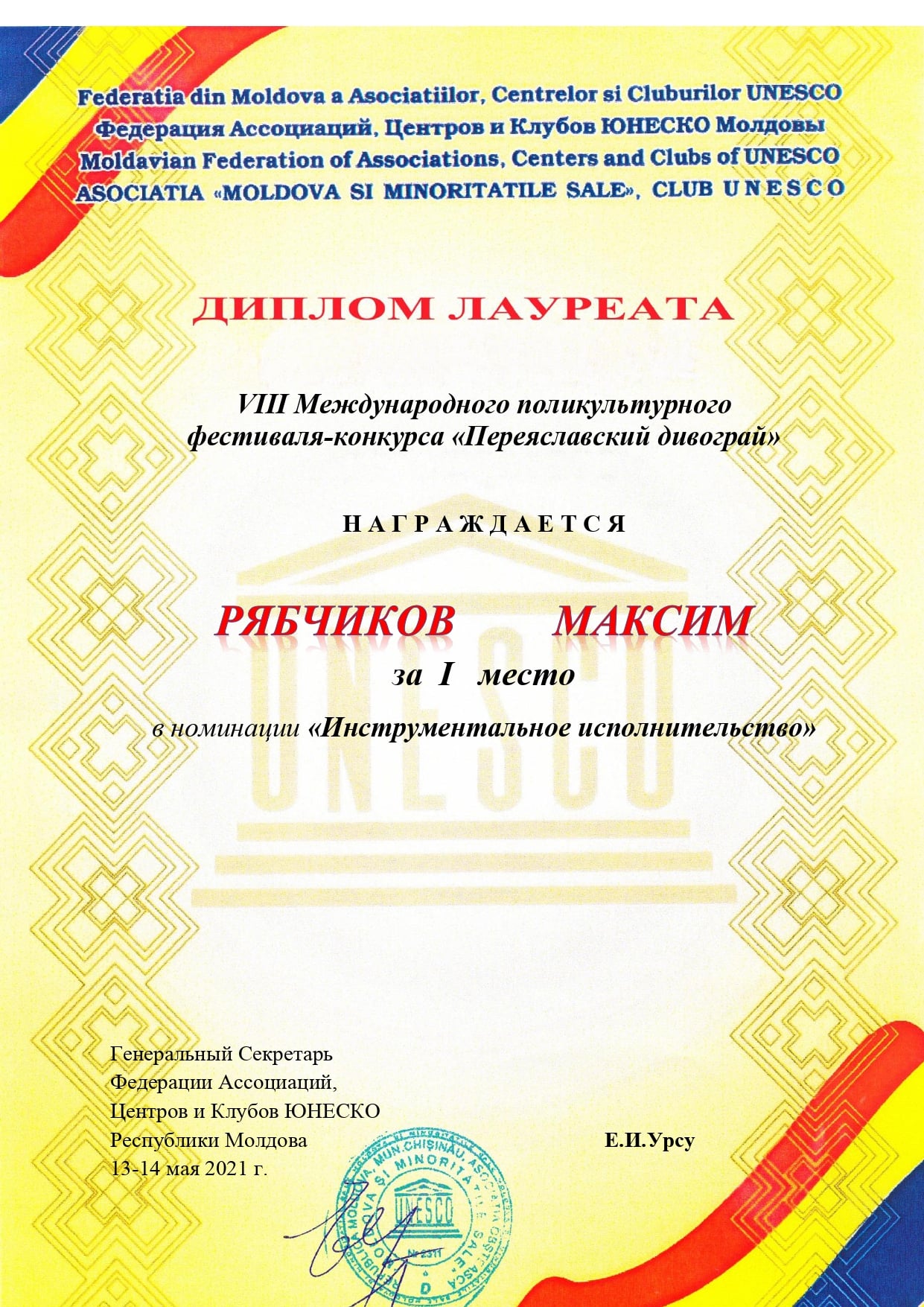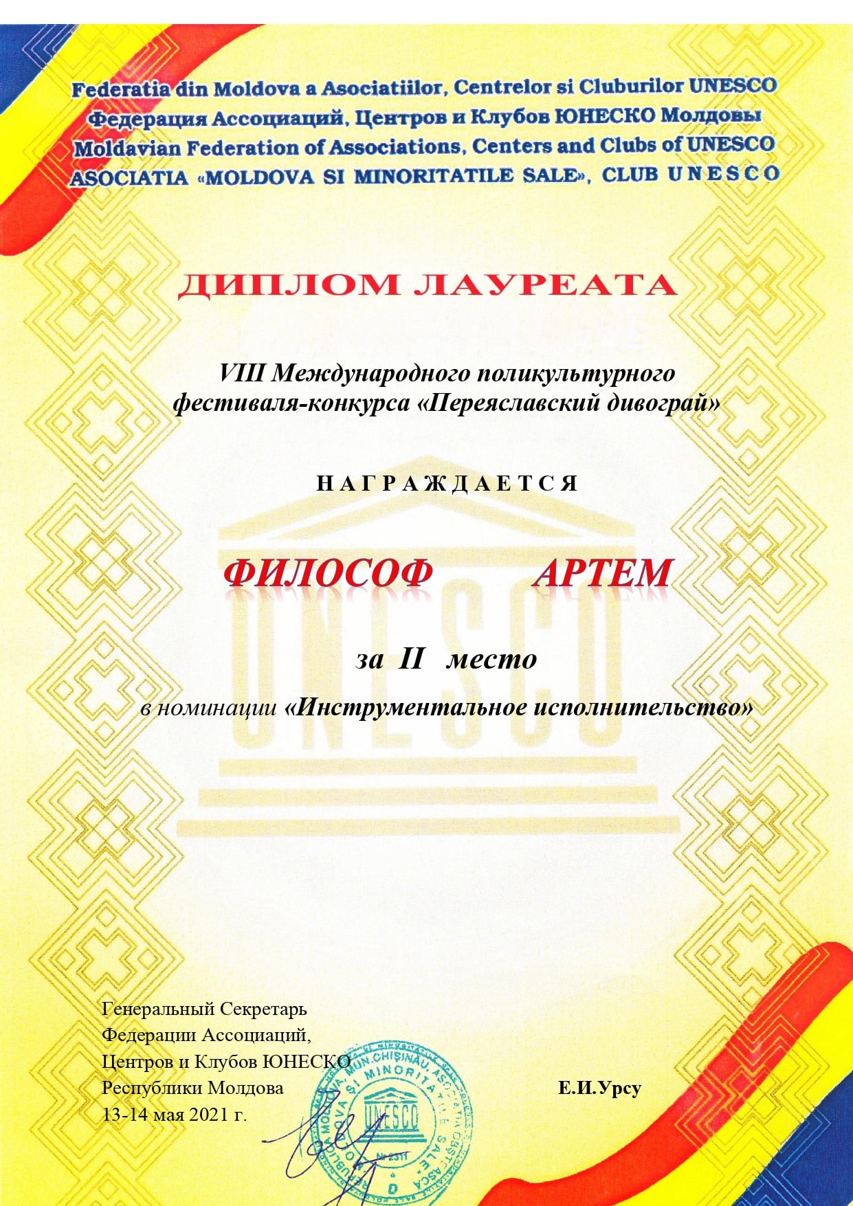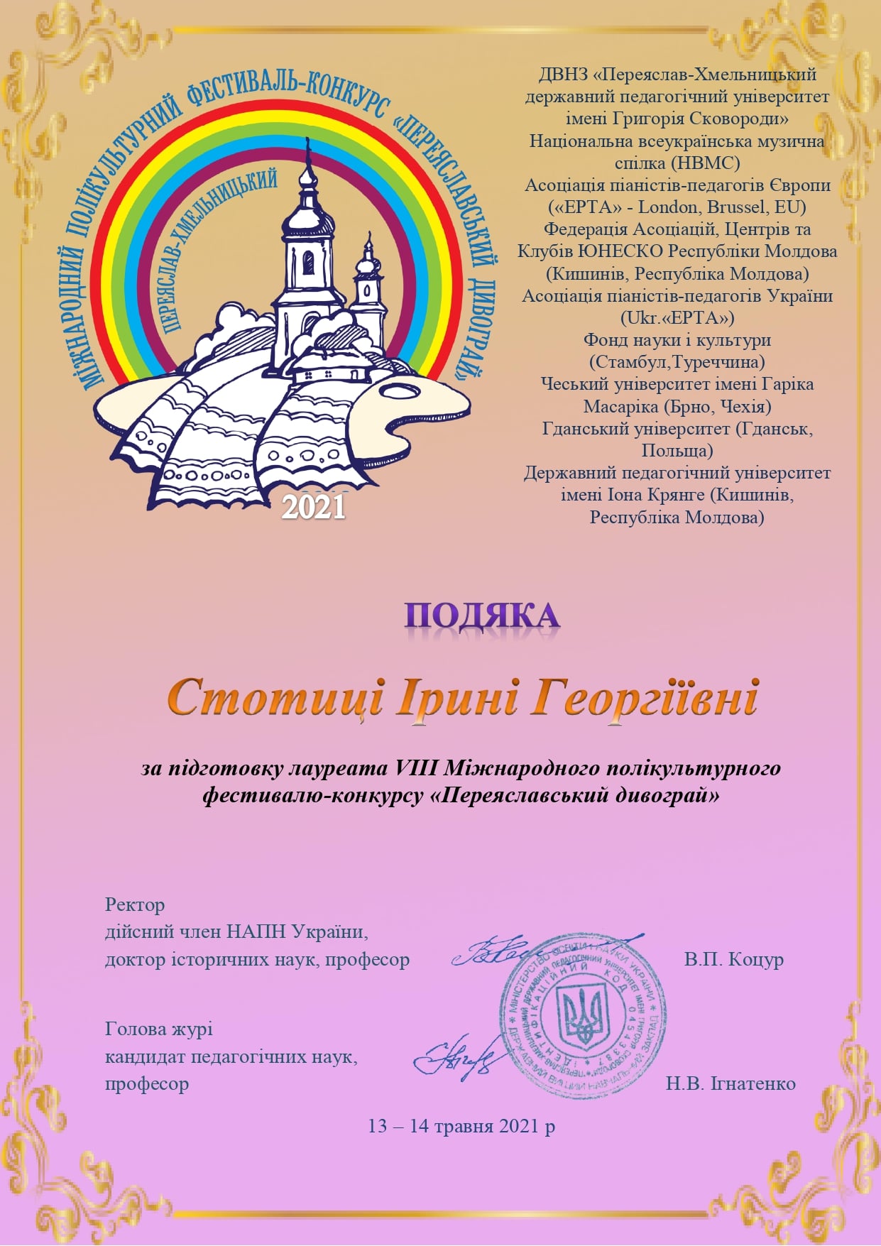 13-14 травня у місті Переяслав-Хмельницький відбувся VIII Міжнародний полікультурний фестиваль-конкурс «Переяславський дивограй”.