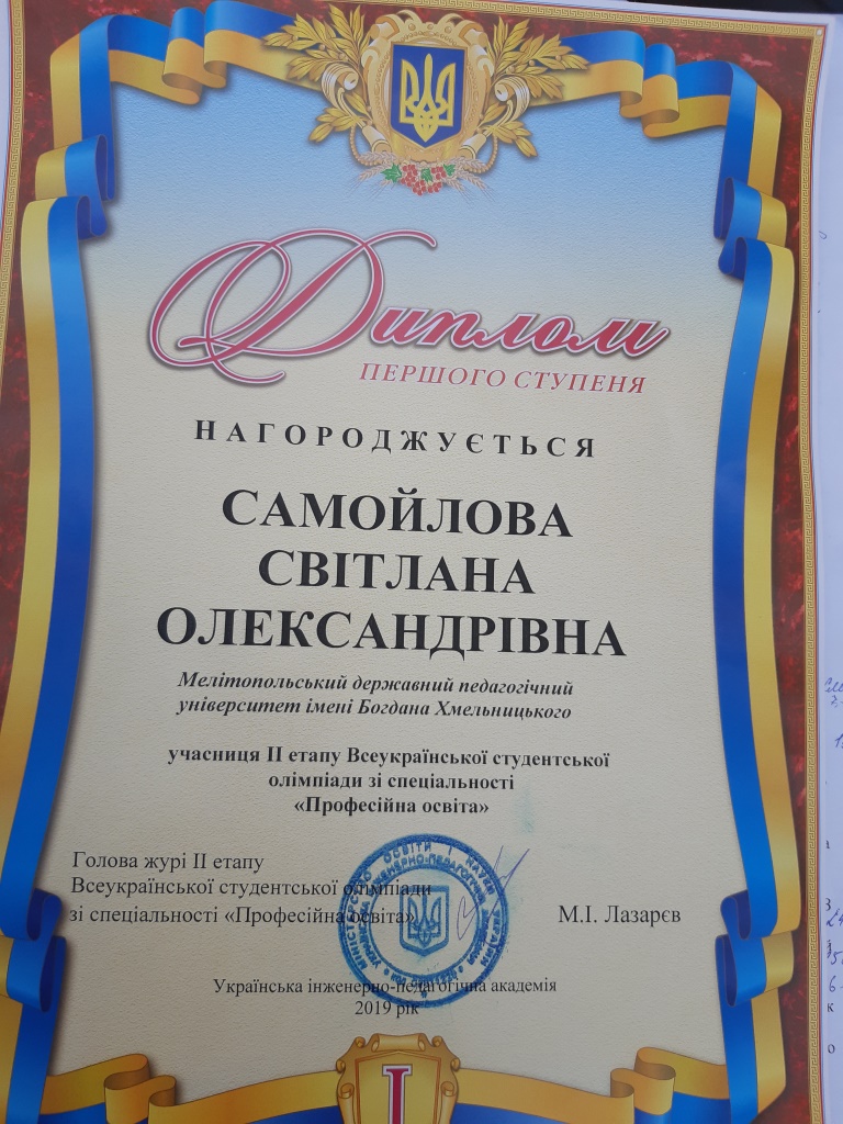 За результатом олімпіади Самойлова Світлана була нагороджена диплом І ступеня.
