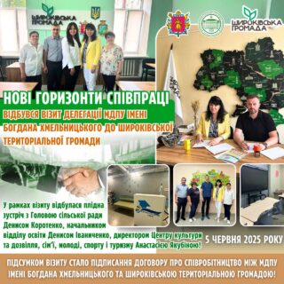 🎓⭐️5 червня 2025 року делегація університету у складі ректора Наталії Фалько, проректора з науково-педагогічної роботи, зовнішніх зв’язків і стратегічного розвитку Олени Арабаджи, декана факультету інформатики, математики та економіки Ернеста Муртазієва та відповідального секретаря приймальної комісії Світлани Дубяги здійснила дружній візит до Широківської територіальної громади, до складу якої входять 33 села і 2 селища.