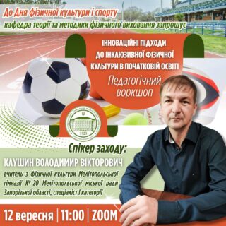 🎤🧑🏼🎓Спікер: Клушин Володимир Вікторович – учитель фізичної культури Мелітопольської гімназії №20, спеціаліст І категорії.