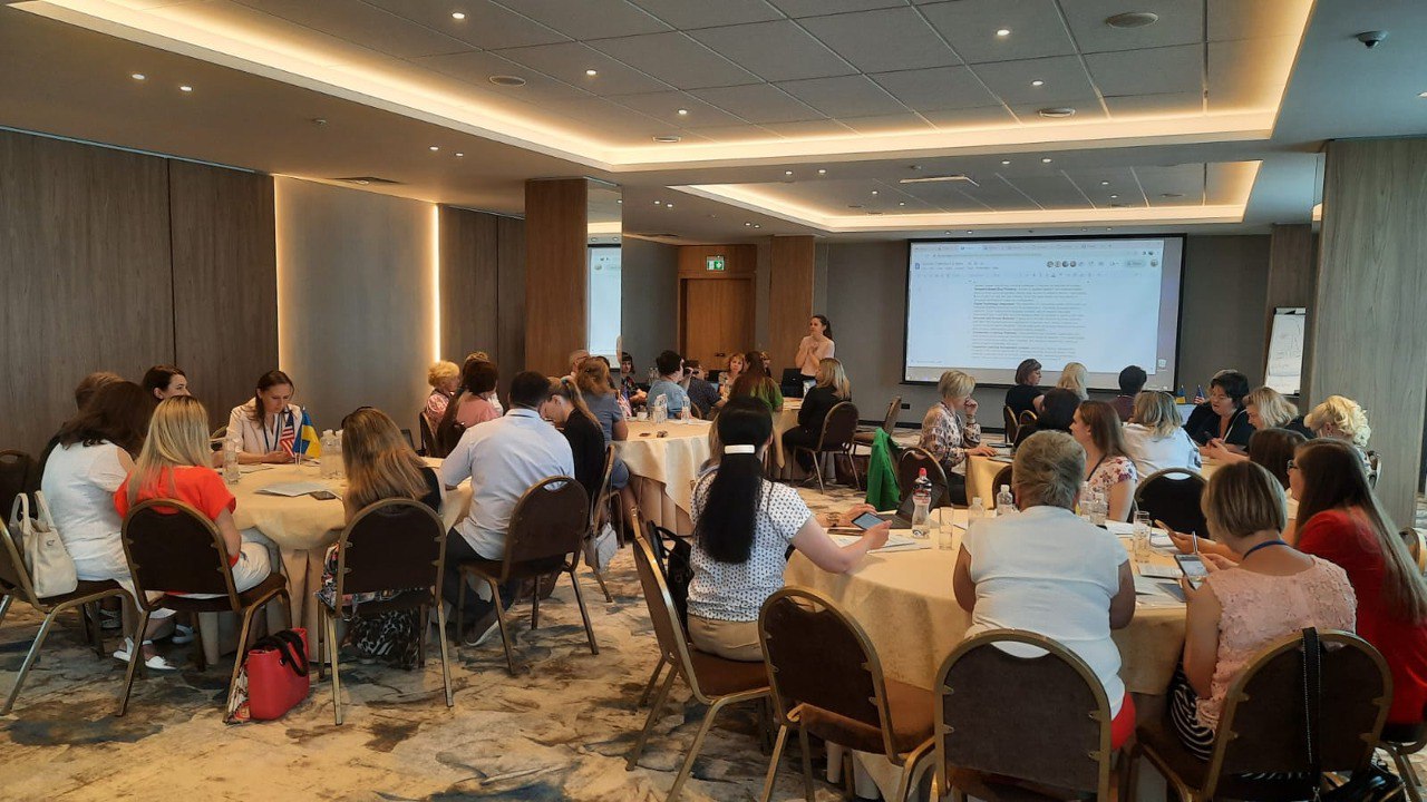 Наш університет на конференції представляла проректор з наукової роботи Тетяна Коноваленко із доповіддю “Sharing experience of participating in projects supported by the U.S. Embassy in Ukraine”. У своїй доповіді вона поділилася тим, як проєкти, фінансовані State Department of the United States та Посольства США в Україні, сприяють професійному розвитку викладачів та допомагають зробити викладання більш студенто-центрованим, цифровізованим та соціально-емоційно сприятливим. Також у доповіді було окреслено шляхи для вдосконалення таких професійних і особистісних рис як лідерство, емоційних інтелект, стійкість, вмінь командної роботи, комунікативних вмінь, інформаційної та медіаграмотності тощо.