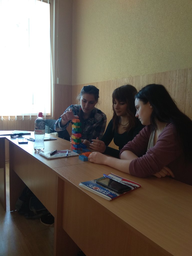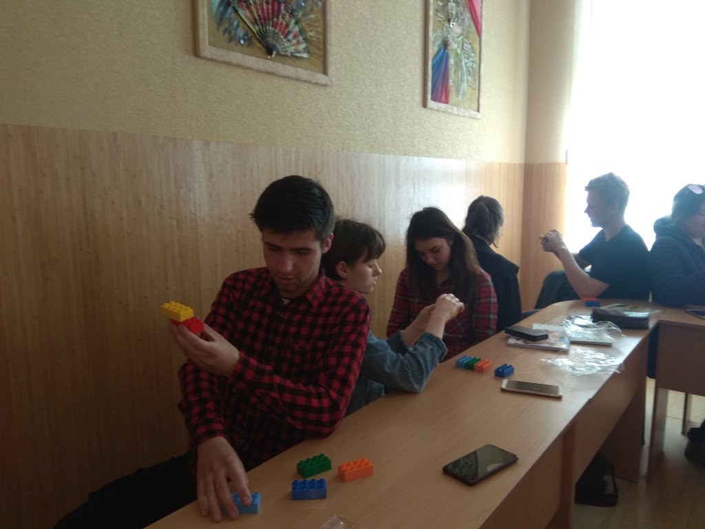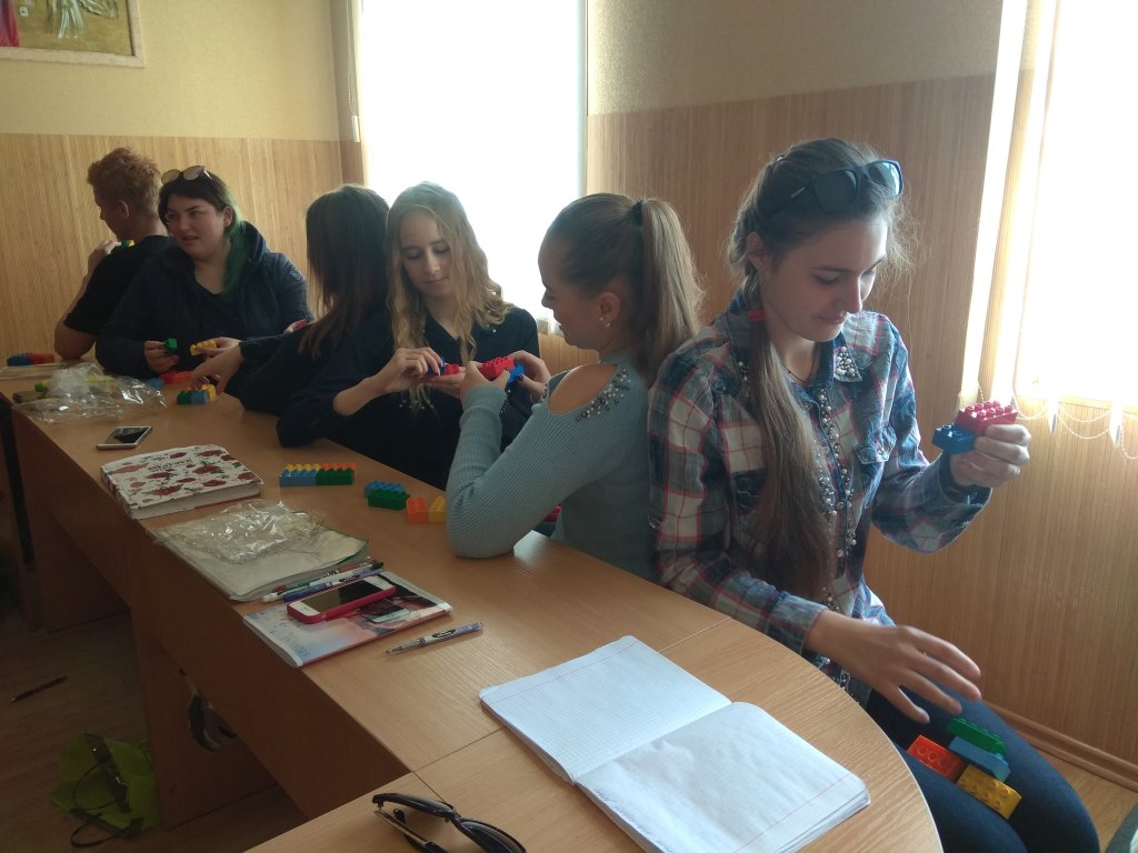 «Шість цеглинок» — це практичний інструмент та дієвий засіб, який дає змогу реалізувати ігрові та діяльнісні методи навчання в освітньому процесі. Під час заняття студенти виконували ігри-завдання, що є унікальним комплексом не лише для розвитку мислення, мовлення, уваги, а й механізм