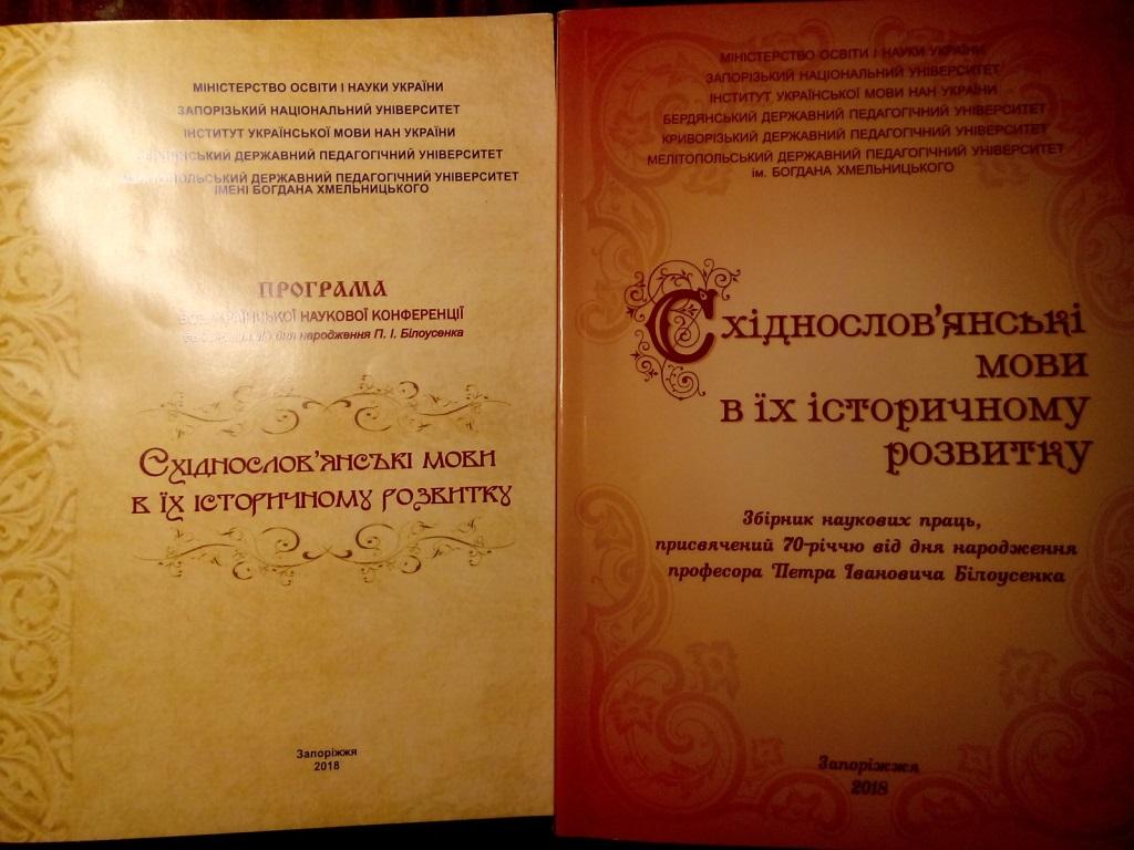 Доценти кафедри української мови Мелітопольського державного педагогічного університету імені Богдана Хмельницького З.О.Митяй та Т. В. Сіроштан взяли участь у Всеукраїнській науковій конференції до 70-річчя від дня народження П.І.Білоусенка «Східнословʼянські мови в їх історичному розвитку» (м. Запоріжжя).