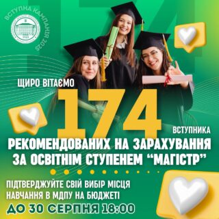 🥳🇺🇦 Вітаємо 174 ВСТУПНИКА, які отримали РЕКОМЕНДАЦІЇ ДО ЗАРАХУВАННЯ НА БЮДЖЕТ ЗА ОСВІТНІМ СТУПЕНЕМ «МАГІСТР»!