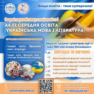 🇺🇦💪🏻Обирай спеціальність А4.01 СЕРЕДНЯ ОСВІТА (УКРАЇНСЬКА МОВА І ЛІТЕРАТУРА), освітні програми: