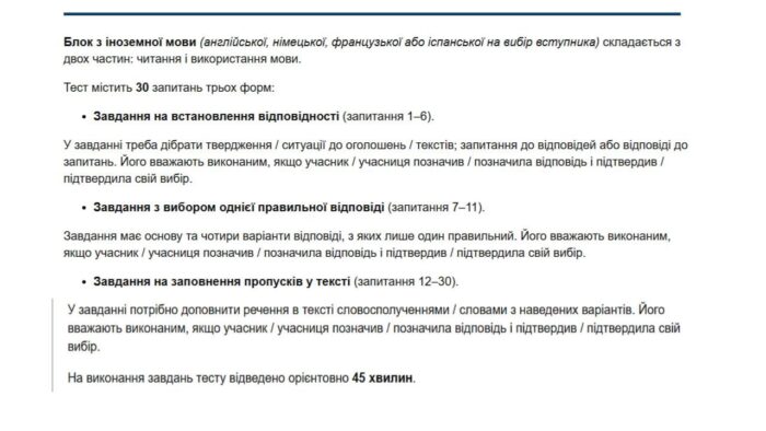 📌 вимоги до рівня володіння мовою (B1–B2), необхідні для успішного проходження випробування;