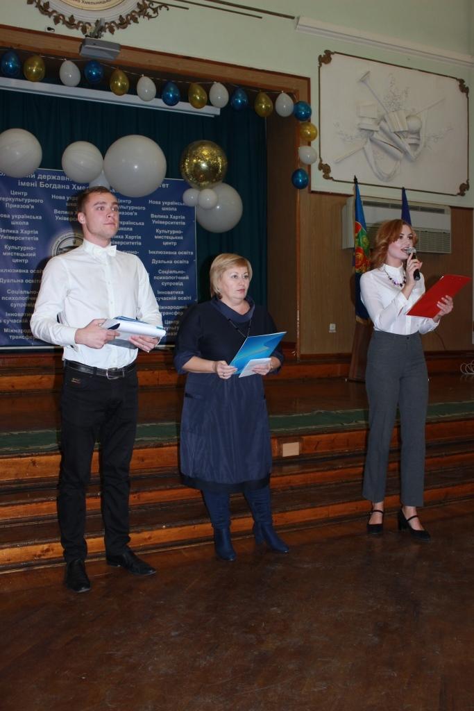 До присутніх з щирими привітаннями звернулися ректор університету Анатолій Солоненко, заступник міського голови Іван Федоров, начальник управління молоді та спорту Мелітопольської міської ради Андрій Жорняк разом із своїм заступником Тетяною Несват, голова Первинного профспілкового комітету університету Тетяна Дюжикова.
