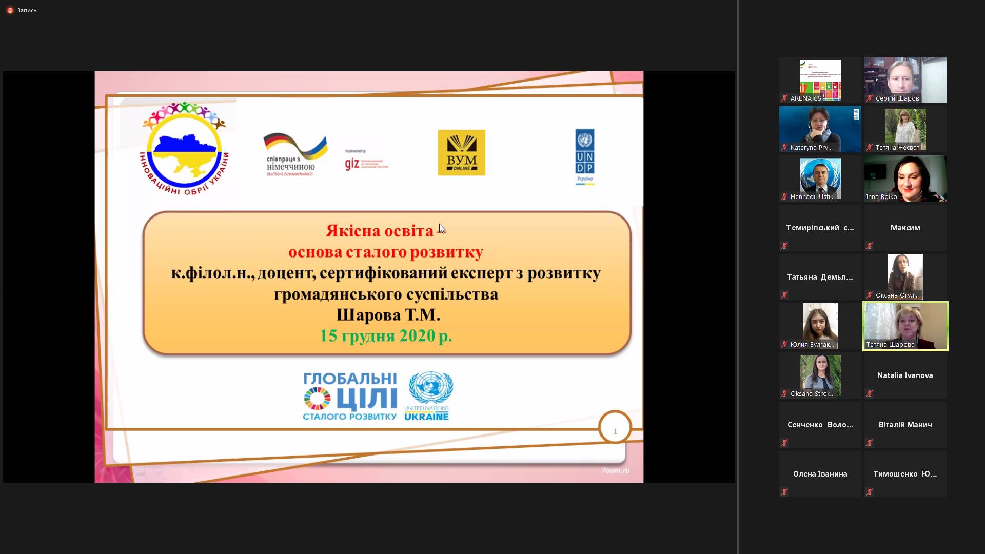 15 грудня 2020 р. відбулася онлайн конференція «Влада, бізнес, громада – через призму співпраці до сталого розвитку Запорізької області» в рамках реалізації проекту ПРООН та GIZ «Онлайн освіта для сталого розвитку».