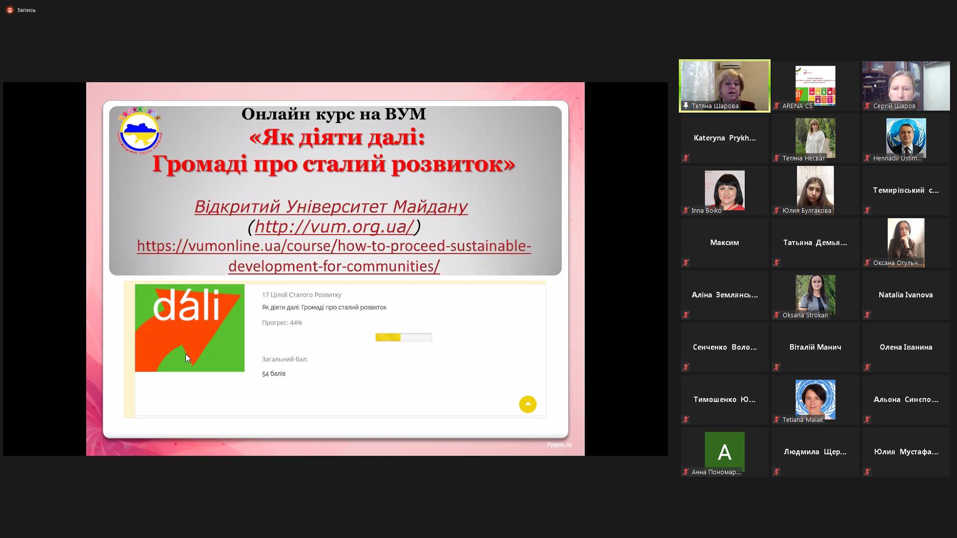 Під час доповіді Шарова Т.М. додатково розповіла про можливості онлайн платформи ВУМ, на якій розташовані курси з громадянської освіти.