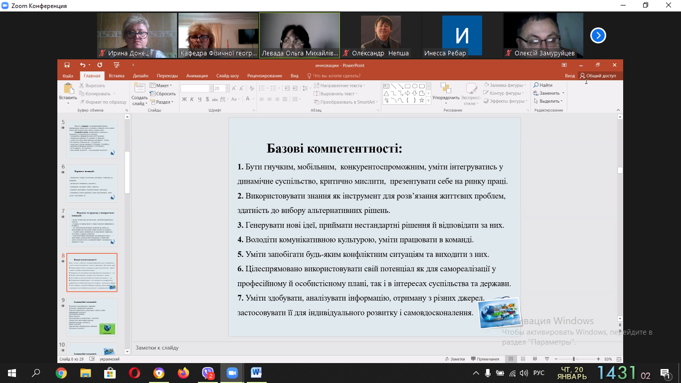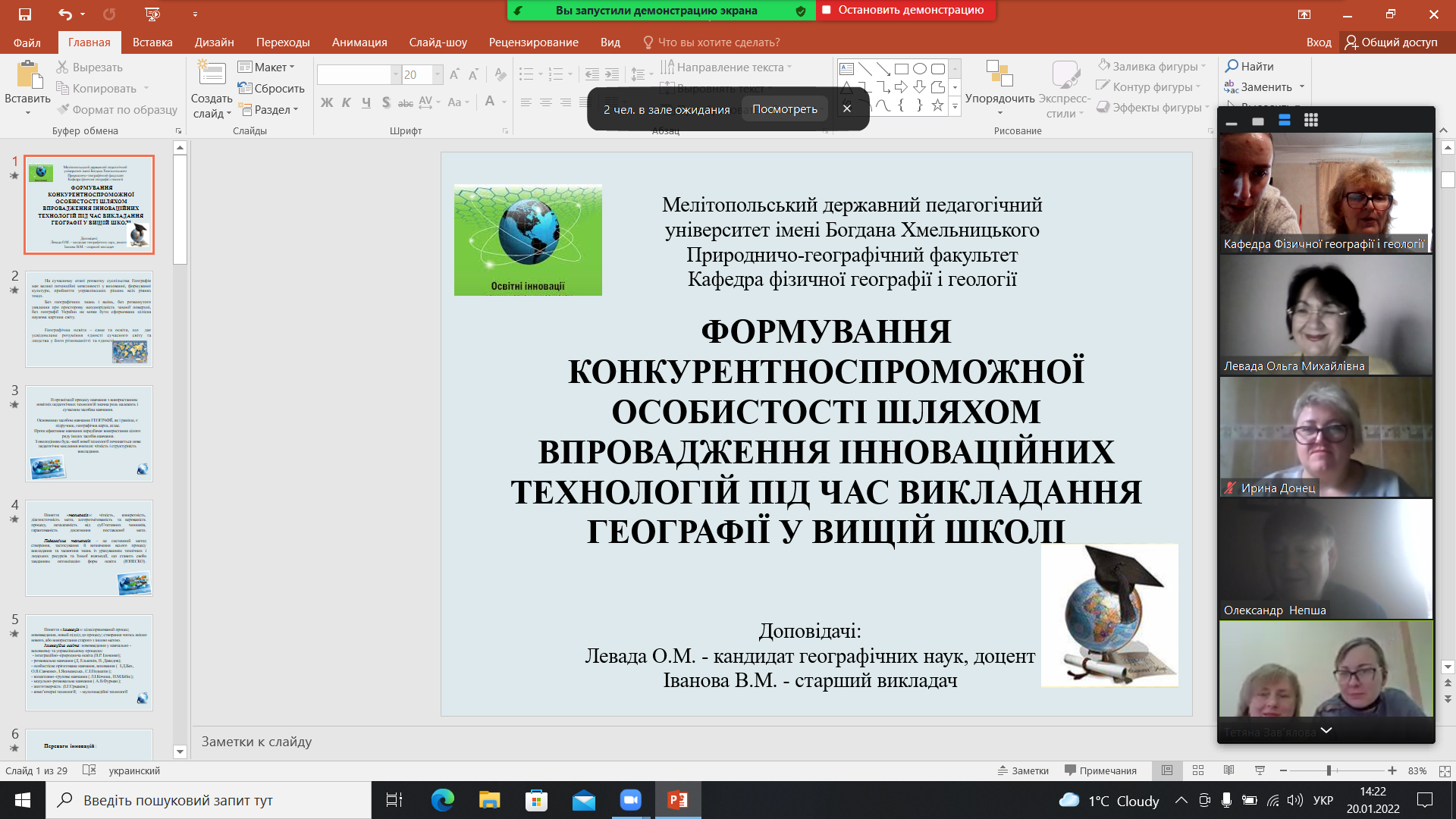 20 січня 2022 р. відповідно до Програми щодо удосконалення професійної майстерності науково-педагогічних працівників університету кафедра фізичної географії і геології провела тренінг на тему: «Формування конкурентноспроможної особистості шляхом впровадження інноваційних технологій під час викладання географії у вищій школі».