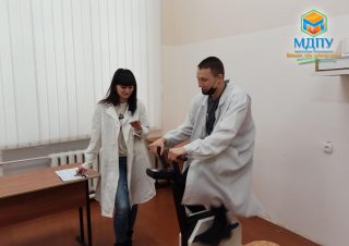 Так, доцент Сидоряк Н.Г. робила дослідження стану серцево-судинної системи за допомогою велоргометра. У студентів на початку заняття підрахували частоту серцевих скорочень та виміряли артеріальний тиск у стані спокою. Потім студенти працювали на велоргометрі протягом 4 хвилин. Після закінчення виконання фізичного навантаження одразу підраховували тиск та пульс. Досліджуваний студент відпочиває 3 хвилини та знову виконує фізичне навантаження. Після 4 хвилин на велоргометрі знову підраховують тиск та пульс.