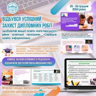 🥳‼️За результатами захисту одна здобувачка отримає диплом з відзнакою. Вітаємо наших випускників з успішним захистом кваліфікаційних робіт!